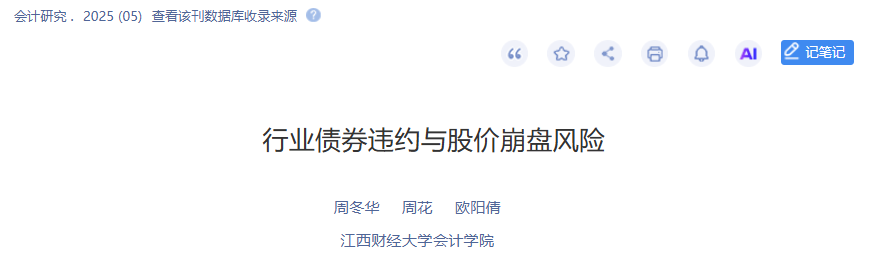 近日,会计学院周冬华教授和博士研究生周花、硕士研究生欧阳倩合作的研究成果《行业债券违约与股价崩盘...