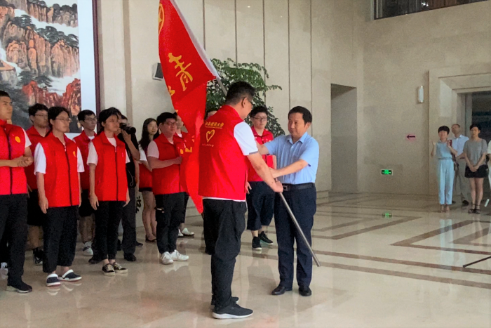 7月20日下午,江西财经大学防汛救灾青年突击队出征授旗仪式举行。校长卢福财、副校长袁红林出席授旗仪式。