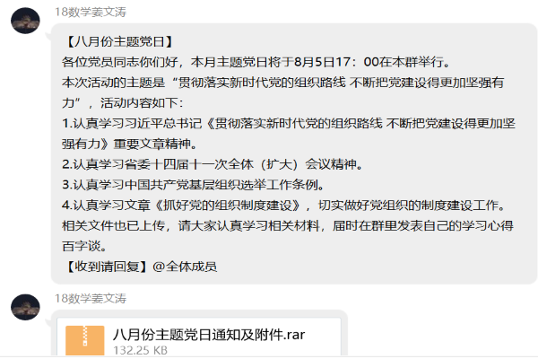为贯彻落实新时代党的组织路线,不断把党建设得更加坚强有力,信息管理学院本科生党支部于8月5日下午在线上召开了“加强组织建设,夯实党建基础”主题党日活动,全体本科生党员参与活动。