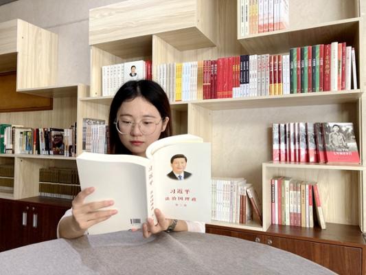 暑假期间,国际学院积极打造了党建文化大厅,积极展现了习近平总书记重要讲话精神、治国理政的智慧成果等精华内容。在文化大厅的一侧,摆满书籍的“初心书角”格外引人注目。“有幸在大学的最后一年遇见‘初心书角’,我想用接下来的一年,把这里的好书读遍,”留校学习的2017级CITF专业学生杨雨佳说,“在这里,我读到了《习近平谈治国理政》第三卷的中文版和英文版,对字里行间中体现的总书记‘我将无我,不负人民’的胸怀与境界深深感动,我会利用假期继续认真阅读。”