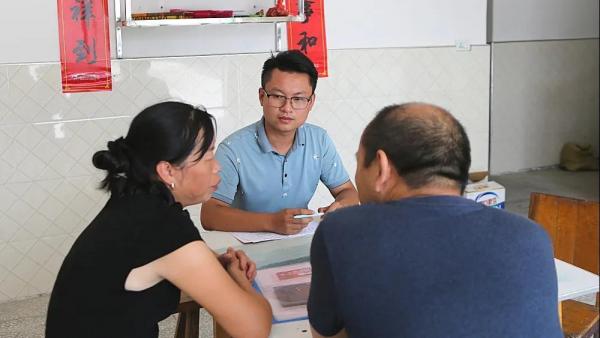 记者来到红群村,看见皮肤黝黑的易政勇正拎着一个白色的帆布袋。原来,贫困户谢金生去外地治病了,他的孩子寄宿在另一个镇的外公外婆家。易政勇去给正准备入读初一的孩子送开学需要的资料。虽说在另一个镇,易政勇却也熟门熟路。