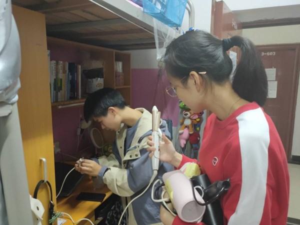 检查时,储备工作人员先巡视宿舍内部,观察宿舍是否存在使用大功率电器和违规刀具的情况。在检查过程中,储备工作人员们始终保持着公正、公平、严谨的态度,认真检查寝室卫生,细致入微;同时,也细心检查所有可能存在的安全隐患,认真记录各寝室的情况,不作假,不马虎。他们还特别提醒学生,应当杜绝使用大功率电器,同时,同学间要相互提醒,以免发生安全事故。最终检查结果为少部分寝室存在违规情况,总体表现良好。