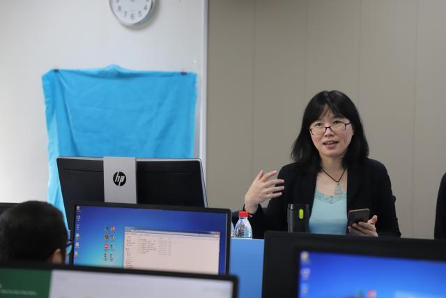 培训伊始,吕晓梅对两位专家进行介绍并对他们的到来表示欢迎。法立明老师开始对Excel相关操作在去年培训的基础上进行更高层次的讲解,他通过带领大家进行实操的方式,主要从数据规范、整理、分析等多个方面展开详细论述。