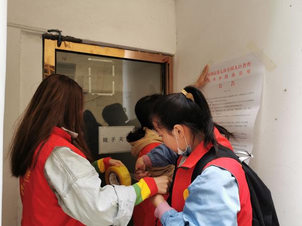 各大组内部志愿者分为五人一组的四个小组,开始进行社区各居民楼楼道处的人口普查宣传海报的张贴工作,在各普查区的主要单元口等显著位置粘贴宣传海报120余张,广泛深入宣传人口普查的法律法规、重要意义和相关政策,提高群众知晓率和参与率。