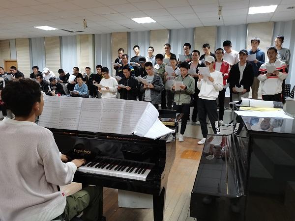 本次训练邀请到专业教师团队为同学们进行培训。在充分了解各位同学的嗓音条件、听辨音能力后,老师为同学们划分了四个声部:男高音、男低音、女高音、女低音。训练伊始,老师采用很多简单有趣的 “热身”方法,在帮助同学们预热声带,打开鼻喉的同时,也调动了同学们的训练积极性。男高音作为合唱团的主力,不负众望,歌声慷慨有力。女高音的旋律是全场的重要主体,虽然合唱团里女高音的人数处于劣势状态,但这依旧不影响合唱时女高音旋律的响起。女中音的旋律大致都是以附和女高音为主,她们作为和声,对于音色,音量的控制较难把握,但是演唱的效果丝毫不比其他声部逊色。