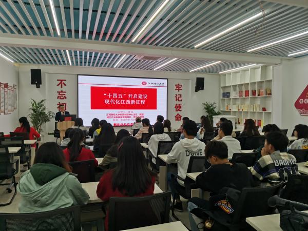 11月11日下午,以“‘十四五’开启建设现代化江西新征程”为主题的江西省省情教育讲座开讲。此次活动邀请到协同创新中心主任兼现代产业发展研究院院长及博士生导师徐斌教授为主讲人,全体先锋班学员踊跃参与。