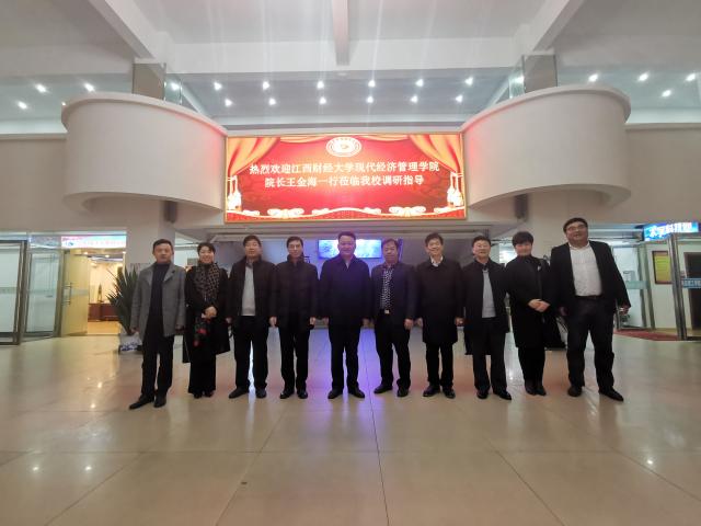 11月26日下午,现代经济管理学院院长王金海带领考察调研团一行八人赴南昌理工学院考察调研。学院党委书记纪春福、副院长丁美东、纪委书记蔡志刚、党委副书记邱晓平、组织部长孙瑛、宣传统战部长张富成、党办院办主任朱晓燕、培训中心主任纪奥陪同调研。南昌理工学院党委书记许基南、党委副书记方正根、组织部、宣传部、思政部、科研处、教务处负责同志参加调研座谈会。