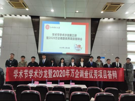 2020年11月28日下午,在蛟桥园北区研究生报告厅,由工商、金融、国贸、软件四学院联合举办的学术节学术沙龙暨2020万企调查优秀项目答辩会正式开始。