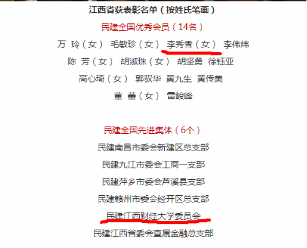 近日,民建成立75周年全国优秀会员和先进集体暨抗击新冠肺炎疫情先进个人和先进集体表彰大会在北京隆重举行。民建中央主席郝明金出席表彰大会并讲话。大会为受表彰代表颁奖,江西民建21名会员8个集体获民建中央表彰。其中,民建江西财经大学委员会被评为全国先进集体(江西省共6个,江西省高校民建组织唯一获此殊荣),民建会员李秀香教授被评为全国优秀会员,为学校统一战线赢得了荣誉。