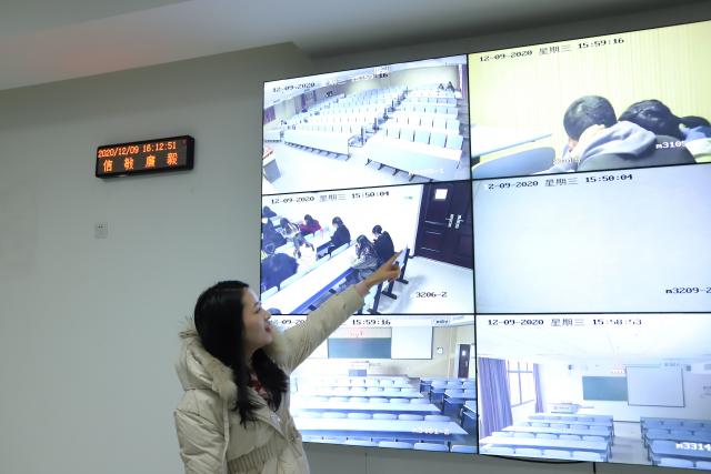 让了让新生更加全面了解我校监控设施及考场舞弊的严重性,12月9日下午3:40由刘灵书记、陶志超副书记,阳铃、刘歆玮老师带队组织各新生班参观三教标准化考场。阳铃及刘歆玮在标准化考场对各班进行了详细的监控解说、考试指导及纪律要求。刘灵号召全体同学在今后的考试中自觉遵守考场纪律,坚决杜绝各种考试舞弊行为,诚信考试,展现自我水平,用真实的成绩证明自己的实力。