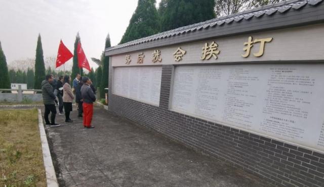 座谈会后, 教工党员们来到潭镇老虎山抗日英烈陵园,缅怀先烈。老虎山抗日英烈陵园是高安市爱国主义教育基地,抗日战争时期长沙会战高奉战役中阵亡的673名官兵埋骨于此。在烈士之子尤国庆老人的讲解下,教工党员们了解了那段峥嵘岁月中一段段感人的事迹,通过参观,同志们了解了七十多年前发生在高安的那段浴血奋战的历史,重温了当年抗日英烈抛头颅洒热血的英勇事迹和抗日斗争的光辉历程,对“落后就要挨打”有了深刻的认识。