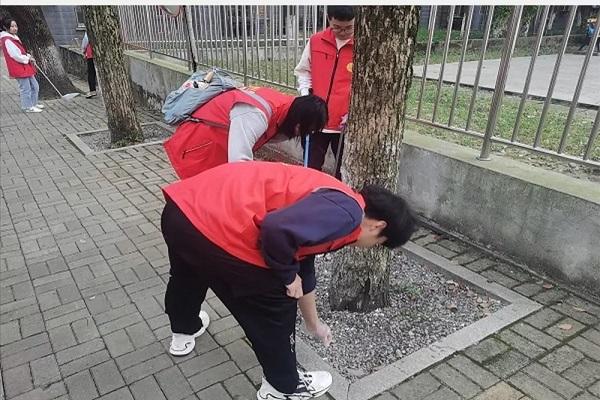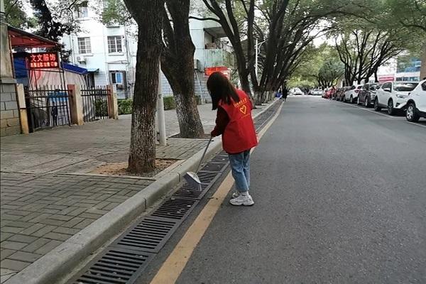 每周三的下午,同学们都会来到指定地点集合,根据青年志愿者协会的负责人员的具体安排,分成几个小组,拿着劳动工具,沿着街道进行清扫。在清扫过程中,同学们用手捡起地上扔的垃圾,用扫帚仔仔细细地清理从树上飘落的树叶,同时也对墙壁上的广告进行清理。无论是在马路上、还是在幼儿园门口、亦或是窄窄的过道里,都会有“红马甲”热火朝天、干劲十足的身影。他们不怕苦、不怕累,仔细清扫每一个角落,不留下一点卫生死角,只为还校园一个绿色、干净的环境。