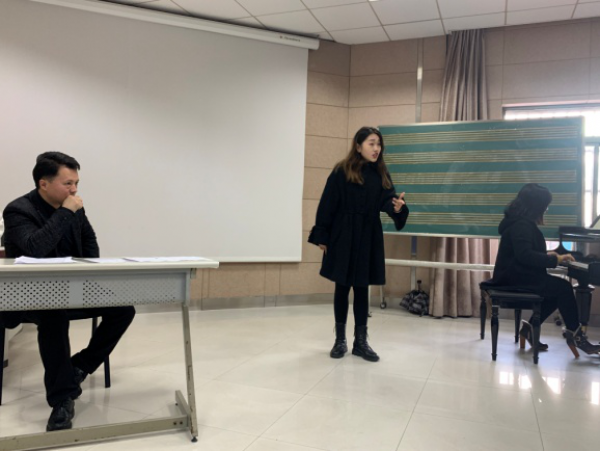 在对张文文、高雅倩、田杨三名研究生进行声乐教学时,马教授除了指出声音的着力点、开口音的母音转换等问题外,还强调研究生在声乐表演中不仅要有扎实的歌唱基础,更要细品歌曲中的韵味,加强角色带入感,演唱时要有情感起伏,眼中要有画面呈现。在对罗璐、李晴两名本科生进行指导时,马教授点出两名学生在演唱过程对平翘舌音等咬字不够清晰,指出口音、口型对音色、音质、韵律都有极大的影响,同时也肯定了学生这一学习阶段的成果,鼓励学生在接下来的学习中再接再厉。马关辉教授在对夏路同学进行授课时,针对该学生的作品完成度以及歌唱状态予以了积极肯定,同时提出还需雕琢每个字的发音吐字,将情绪层层推进。廖宇同学在演唱外国歌曲《诽谤》时,马教授指出在演唱外国歌曲时,虽然歌词染听众。语意无法让每个听众理解,但演唱者可以通过自己对音乐作品的诠释,突出层次感从而感染听众。