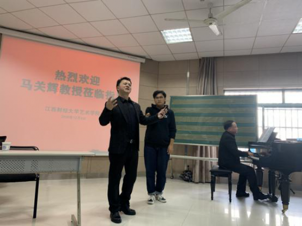 12月4日上午9时,著名的男高音歌唱家、国家一级演员、中国音乐家协会会员、贵州省青年联合会委员、贵州师范学院音乐舞蹈学院院长马关辉教授应江西财经大学艺术学院邀请,在荟庐C185报告厅作声乐公开课讲座。艺术学院音乐系师生及校外声乐爱好者们观摩聆听了本次讲座,同时对马关辉教授此次莅临指导教学表示热烈欢迎。