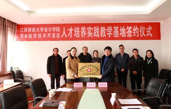 黄雨虹与段练在双方代表的见证下共同签署了合作协议,随后,黄雨虹代表会计学院向萍乡经济技术开发区颁发了“实践教学基地”牌匾,双方出席嘉宾合影留念,并于活动结束后举行了相关岗位的面试。(文/会计学院 陆灵娇 图/会计学院 蒋博斌 编辑/范毅洲)