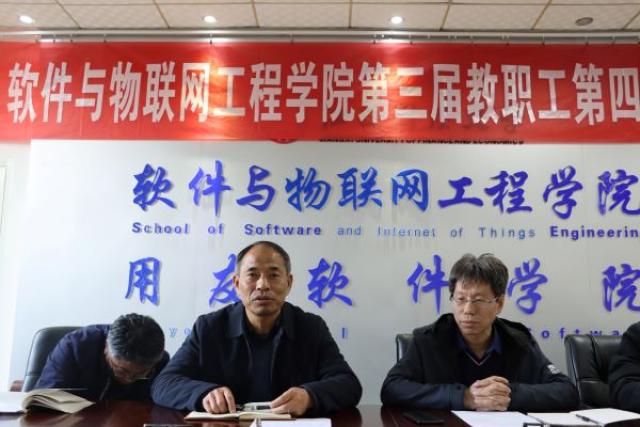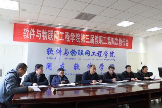 1月14日,软件与物联网工程学院于荟庐二楼报告厅召开了第三届教职工第四次教代会暨2020年总结大会。学院党政领导班子及全体教职工参会。大会由党委副书记彭敏主持。会议以习近平新时代中国特色社会主义思想为指导,全面贯彻党的十九大、十九届二中、三中、四中、五中全会精神,落实学校党委、行政会议部署,总结工作,分析形势,明确任务,保持战略定力,锐意改革创新,奋力攻坚克难,全面推进学院发展。