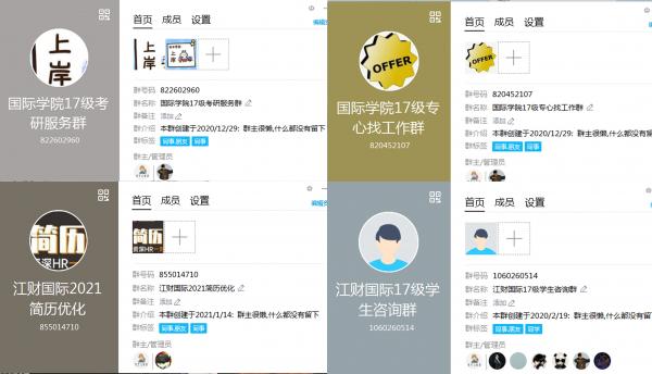 考研结束后,国际学院2017级班主任迅速组织召开线上家长会,讲形势、讲政策、讲要求,与家长商讨如何做好学生的思想工作,并发挥家长的教育优势,鼓励学生积极就业。此外,班主任召开线下就业主题班会,与学生进行面对面交流,掌握就业意向,“1对1”推进学生就业工作。学院还建立“江财国际17级学生咨询群”、“2017级考研服务群”以及“2017级专心找工作群”,邀请学院院长、书记和学院各科室负责人等就业工作领导小组成员加入学生咨询群,为学生答疑解惑,提供全天不间断、全年365天毕业就业服务咨询。