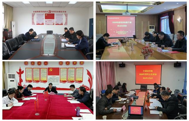 1月20日至23日,资产管理处、继续教育学院、信息管理学院、外国语学院分别召开2020年度党员处级干部民主生活会。副校长袁雄到会指导,四单位领导班子全体成员参加会议。会议分别由资产管理处处长陆晓兵、继续教育学院党总支书记王根生、信息管理学院党委书记张志军、外国语学院党委书记涂远武主持。