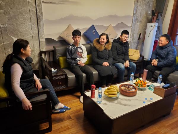 通过前期摸排,学院共有一名同学因疫情无法回家留在南昌,何哲坤同学因家住石家庄,当地被列为疫情高风险地区,只能寄宿在同班同学陈锐祺家中。家访过程中,陈锐祺妈妈介绍到:“两位同学是大学室友,寝室氛围一直很和睦,听说何哲坤无法回家时,我们便热情邀请他寄宿在自己家中。很感谢学院一直以来对学生们的关心与厚爱,看来我们当初来江财的选择没有错!”随后大家就防疫要求以及留学、实习等方面问题进行了亲切交流,涂艳书记叮嘱两位同学:寒假期间要及时了解学校及当地防疫要求,务必做好疫情相关防护措施。此外也要提前规划大学时间,充分利用寒假假期扎实学好专业知识。最后涂艳书记代表学院送上了对留昌学生的关怀与慰问。
