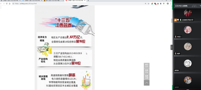 会议第三项,学习江西省十三届人大五次会议政府工作报告。一图读懂省政府工作报告,报告列举了这一年来江西省在创新、产业、内需、改革、开放、区域、生态、民生等八个方面的显著成果,让我们为之振奋!
