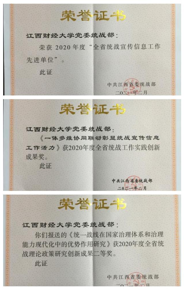 会议通报了全省2020年度统战理论创新、实践创新、宣传信息工作等情况。我校党委统战部获评“全省统战宣传信息工作先进单位”,报送的统战工作实践项目《一体多维协同联动彰显统战宣传信息工作活力》获评全省统战工作实践创新成果奖,推荐的由马克思主义学院刘晓根博士负责的统战课题研究文章《统一战线在国家治理体系和治理能力现代化中的优势作用研究》获评全省统战理论政策研究创新成果二等奖。