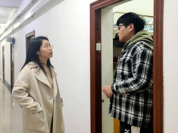 曹继明跟随查寝人员走访多个寝室,在返校查寝过程中,曹继明向同学们表达学院对同学们安全及生活的关心,他希望同学们返校后能够及时调整好学习的状态。最后,曹继明强调了销假的重要性,临时外出和当晚返校的学生都需要在当晚进行销假。曹继明和周珏亲切地与工商学子交谈,寝室内氛围融洽。