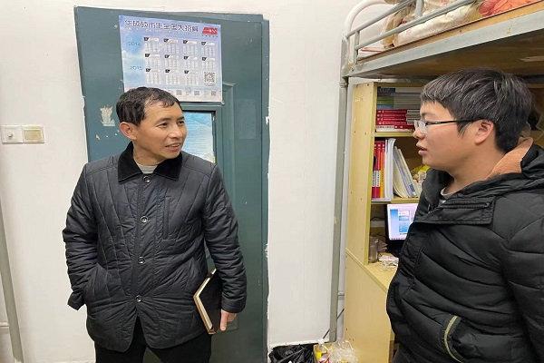 活动当天,段远鸿书记来到位于蛟桥园校区的毕业班学生寝室楼,为毕业班学生们送上贴心的问候,随后逐间走访各毕业学生寝室,了解了各寝室的日常学习求职生活。临近毕业,每当走访到一间寝室,段远鸿书记都要和青年学生们谈起学习和生活的点点滴滴。而同学们对于未来的规划的迷惑,段书记都热情地提出建议与意见,解答同学们关于就业、考研和考公的疑惑,鼓舞了同学们的就业热情。与此同时,段远鸿书记积极倡导青年毕业生们到基层就业,响应国家号召,担起新时代青年的重任,做一个有理想、有本领、有担当的有为青年。