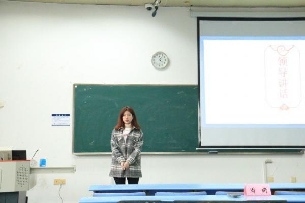 接下来由优秀先进个人代表经贸201班黄佐发言。他回忆了那一段辛苦却又充实的时光,表达了对那段时光的怀念和作为国贸人的骄傲。