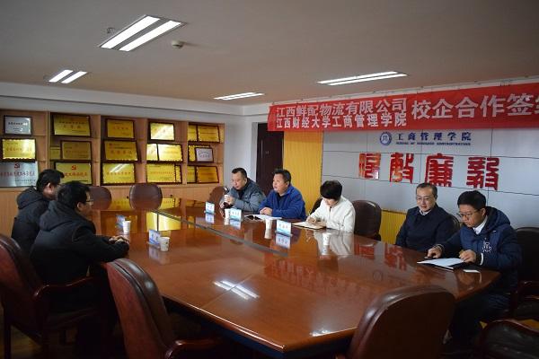 3月10日上午,工商管理学院与江西鲜配物流有限公司院企合作签约仪式在工商大楼403会议室举行。参加仪式的学院代表有工商管理学院党委书记黄文德、党委副书记周海燕、物流系教师仲昇、王雪峰,就业专员曹继明,企业方代表鲜生活冷链物流有限公司华中区行政总监施鸿博、江西省物流行业协会江西省商贸物流产业链招生引资服务中心副秘书长童建出席了本次签约仪式。