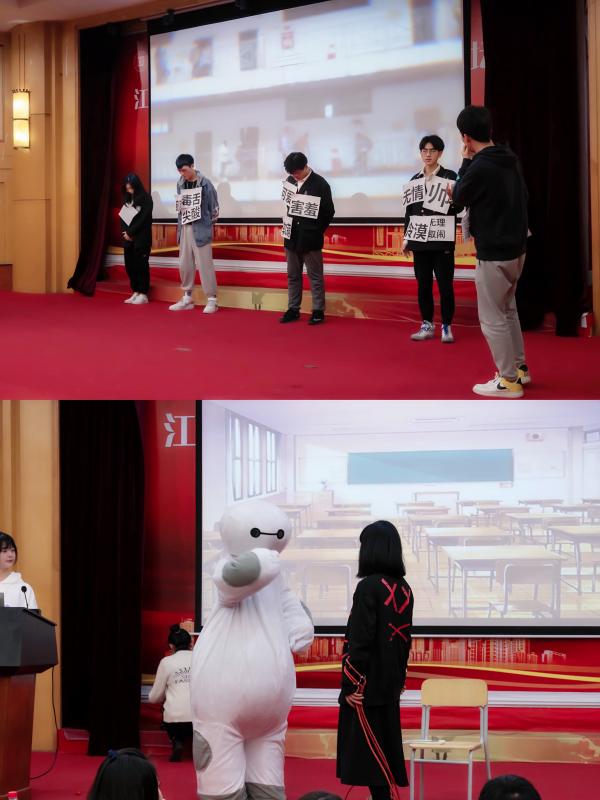 八个班级的剧情均围绕着大学生日常生活中可能遇见的心理问题展开。比赛中,演员们的精彩演绎,用欢笑与泪水诠释了大学生的心理成长历程。标签、友谊、抑郁、攀比等主题,贴近生活,富有代入感。演员们自然的肢体动作和极具张力的台词,使台下观众的心灵都受到了极大的触动,赢得全场热烈的掌声。