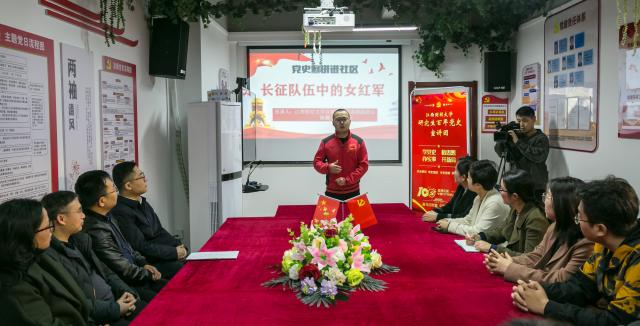 启动仪式结束后,江西财经大学研究生百年党史宣讲团报告会开讲,马克思主义学院研究生陈瀚同学带来了主题为“长征队伍中的女红军”的精彩报告,报告基于实事求是的大历史观,以姚树兰、陈慧清这两位女红军的真实故事为切入点描绘了中国共产党始终把人民利益放在第一位,全心全意为人民服务的根本宗旨,表明幸福生活的来之不易以及坚守使命的意义,报告现场掌声不断。