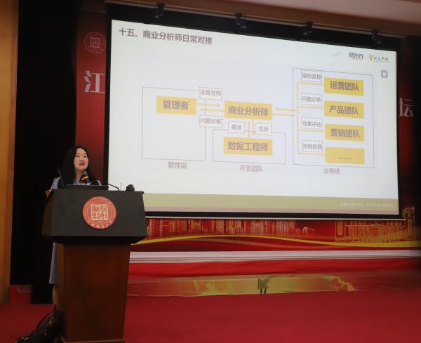 3月21日下午,统计学院在国际学术报告厅举办职业规划与形势分析讲座,邀请新东方前途出国就业力项目推广管理中心线上产品主管袁小清主讲,围绕“职业规划与就业形势分析”主题,从“考研、求职数据分享”“HR在招聘中是如何选人的”“怎么定义好工作的标准”“找到自己心仪工作方向的底层逻辑”“大学期间需要做哪些准备工作”“如何打造国际化竞争力”等几方面,帮助同学们了解当前国内考研和求职的大环境,提早做好应届毕业生的规划,找准自身的定位,全面提升大学生的核心竞争力,培养国际视野。统计学院2018级学生300余人现场聆听了讲座。