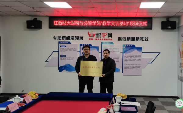 3月19日下午,财税与公共管理学院分别和江西道善律师事务所、南昌嘉博税务师事务所总经理谭任辉签订战略合作协议,并授予江西财经大学财税与公共管理学院“教学实训实习基地”牌匾。学院院长张仲芳、党委书记段远鸿、党政办主任方晔、学工办主任吴宗福、专职辅导员付泉一行赴两家事务所签署协议并授牌,江西道善律师事务所主任郭舒萍、南昌嘉博税务师事务所总经理谭任辉等热情欢迎了张仲芳一行,并组织和参加了签约及授牌仪式。