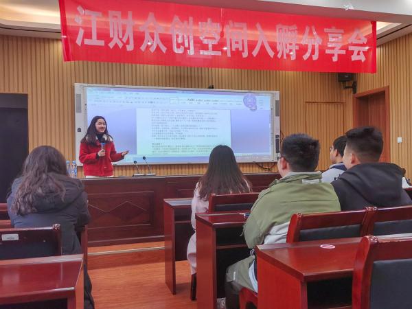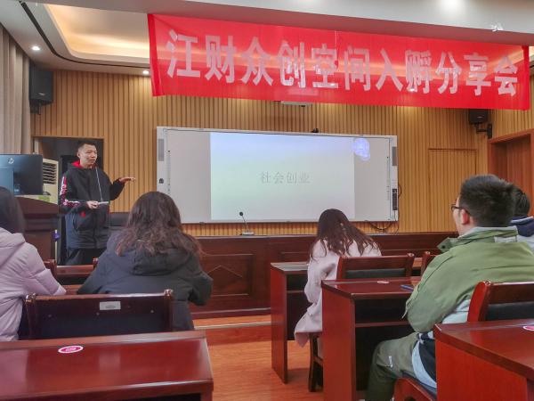 3月21日下午,由金融学院实践部承办的江财众创空间入孵分享会于翼轸楼顺利开展,分享会邀请了18级周沛、19级张贵普两位在比赛中取得优秀成绩的同学进行经验分享。