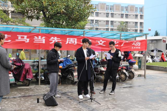 雷锋精神永远不会过时,学雷锋是文明社会的主旋律,在新时代我们更要传承与弘扬雷锋精神。为传承与弘扬雷锋精神,3月21日中午,艺术学院以班级为单位在一食堂门口举办了周末文化广场活动。本次活动以“朗诵比赛”的形式,旨在纪念雷锋事迹、宣扬雷锋精神,把正能量带到校园的每一处。