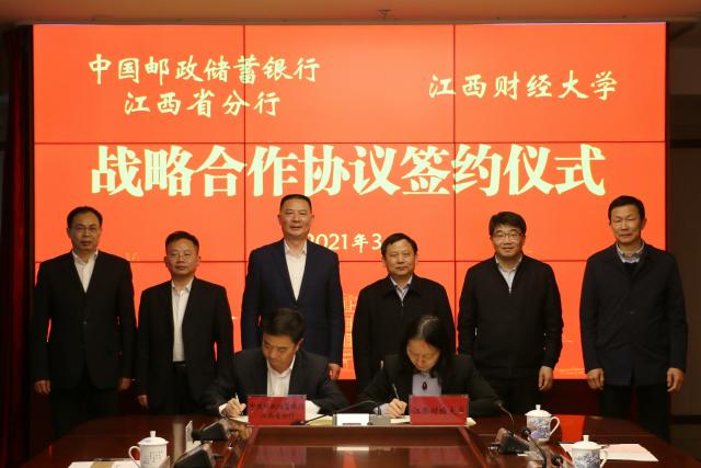 党办校办、财务处、招生就业处、继续教育学院、财税与公共管理学院、金融学院等单位负责同志,中国邮政储蓄银行股份有限公司江西省分行办公室、人力资源部、公司金融部、交易银行部、个人金融部、行信用卡部等部门负责人参加签约仪式。