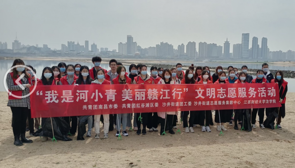2021年世界节水日来临之际,为响应国家节水号召,落实绿色发展理念,3月23日上午,法学院青年志愿者协会来到秋水广场参加由南昌市水利局、共青团南昌市委主办的“我是河小青美丽赣江行”保护赣江志愿服务活动。