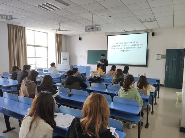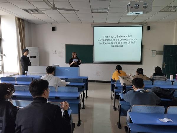 此次BP辩论赛决赛的辩题为“This House Believes that companies should be responsible for the work-life balance of theiremployees.”。比赛过程中,教室外等待的选手们严阵以待,蓄势待发。正在“较量”的选手也意气风发,见招拆招。赛场上的气氛“剑拔弩张”,问题愈发刁钻,辩手亦是切中要害。他们精彩的表现引得现场惊呼不断,掌声四起。