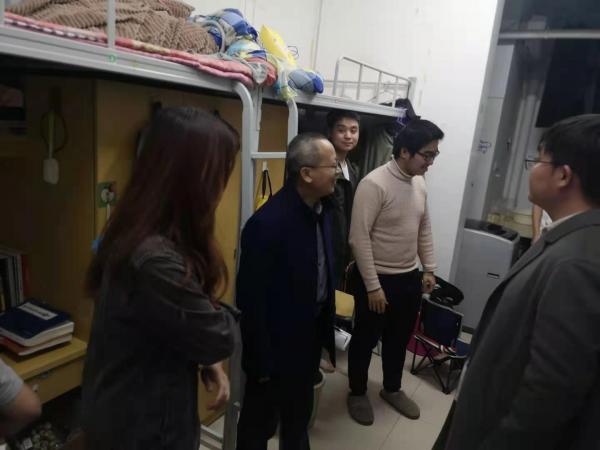 326日晚,统计学院党委副书记黄黑平、辅导员钟晴、辅导员林阳一同深入学生宿舍,进一步了解学生寝室情况,加强学生安全教育和宿舍管理,关心慰问学生生活。