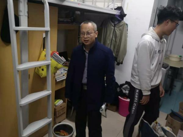 走访中,黄黑平一行首先对宿舍的卫生以及门牌的悬挂情况进行检查,检查过程中发现学生在新学期的宿舍内务情况相对以往有很大的改善,且大部分宿舍均挂上了新的门牌。针对一些卫生情况不佳的寝室,黄黑平叮嘱他们要及时进行整改,要求没有及时悬挂门牌的寝室尽快悬挂好新的门牌。黄黑平要求,党员寝室要发挥模范带头作用,在宿舍卫生上要起到示范的效果。检查过程中,老师们与同学进行亲切的交流,交谈衣、食、住、行、用等方面的事宜。面对同学们提出的各个问题,老师们仔细聆听并为他们解答,向他们分享了很多在学习、生活上的心得。黄黑平表示看到同学们在新学期的成长、学习上的进取、生活上的热忱很欣慰,并告诉同学们如果遇到学习、生活中的难题,可随时随地向老师寻求帮助,统计学院一定是他们最坚强的后盾。