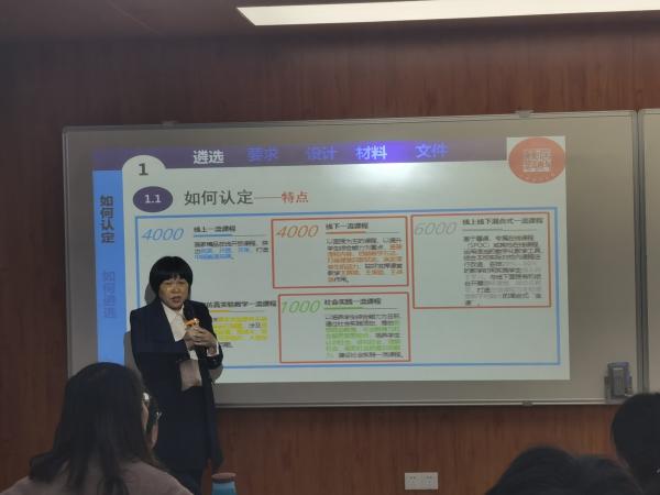 程淑珍教授是国家级精品在线开放课程(线上一流本科课程)和省级线上、线下混合式一流本科课程《会计学原理》的负责人,她从申报遴选、申报要求、申报设计、申报材料和申报文件等方面详细解读了一流本科课程申报工作。她以自己的混合教学经验为例,剖析了申报材料的重点准备环节,强调了学生中心、产出导向和持续改进的教学理念,指出要通过挖掘教学内容、教学方法和教学评价来突出教学设计的特色。