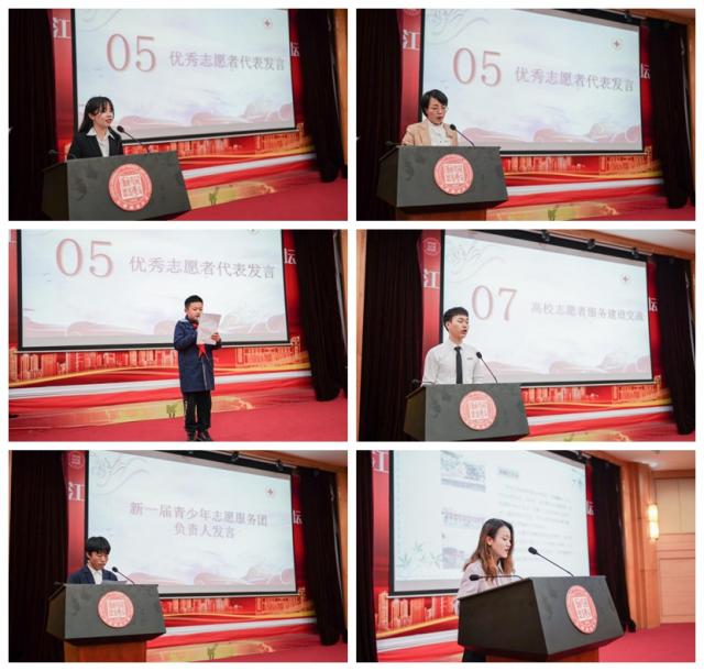 大会下半场,举行新一届青少年志愿服务团换届仪式,孙贵才博士为新一届青少年志愿服务团负责人颁发聘书。新一届青少年志愿服务团代表刘文琪上台发言。随后,江西财经大学校团委书记夏贤锋老师与下一届表彰大会承办方东华理工大学刘惠文老师进行队旗交接仪式。其后,江西财经大学青年志愿者协会负责人汪伟健与绿派社成员代表高燕妮上台发言,向在场观众描绘我校及我校公益社团志愿服务建设现状并提出下一步发展方向。