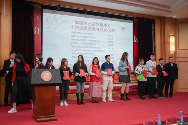3月28日,第六届邹德凤公益发展中心表彰大会暨青少年志愿服务团换届仪式在江西财经大学隆重举行。