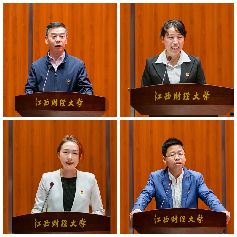 思想政治工作先进集体代表、信息管理学院党委书记张志军,思想政治工作先进个人代表、艺术学院学工办主任王慧芳,辅导员年度人物代表、统计学院团委书记陈曦,班主任标兵代表、法学院教师聂淼先后在会上作了交流发言。