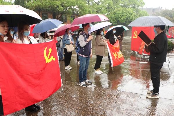 在姜钰琪同志的带领下,全体同志在方志敏烈士铜像前重温入党誓词。在大雨中,全体党员高举右手,庄严宣誓:我志愿加入中国共产党,履行党员义务,执行党的决定......”磅礴的大雨阻挡不了大家在革命先烈面前表达自己坚定的意志和决心。预备党员巫丽盈同志表示:今日重游方志敏烈士陵园,感受颇深。方志敏烈士曾被俘入狱,在狱中写下豪情壮志的诗篇,其狱著《清贫》中写道,“清贫,洁白朴素的生活,正是我们革命者能够战胜许多困难的地方!”学习方志敏同志的革命精神,对于我们传承红色基因,不忘初心、牢记使命,锤炼忠诚干净担当的政治品格,具有重要的现实意义。