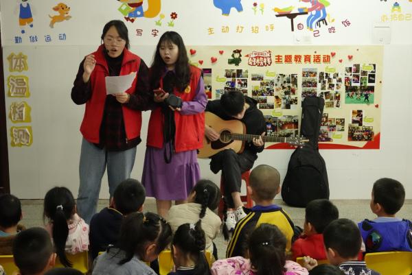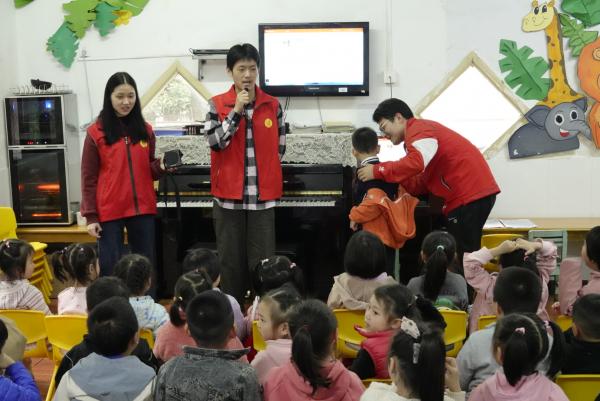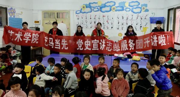 4月2日下午三点,艺术学院青年志愿者们来到江西财经大学附属幼儿园,积极开展“艺术学院‘艺马当先’党史宣讲”志愿服务活动。