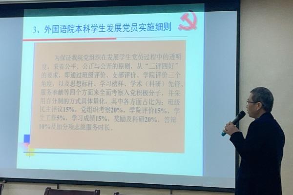 党委副书记左家盛随后进行本学期的第一讲党课——《入党条件与入党程序》,本次党课主要讲解了一百年来我们党之所以能够由小到大、由弱到强,并领导人民取得了革命、建设和改革的伟大成就,很关键的一点就是在各个历史时期都严把“入口”关,严格入党条件,才使党一直保持着先进性,不断增强党员队伍的生机和活力,增强党在全社会的影响力和凝聚力。同时也指出,入党条件和党员标准也是一个不断丰富和发展的过程。党员的条件和标准是党组织发展党员的基本依据。吸收什么人入党,即入党条件、入党标准问题,依据的是党的斗争和建设的实践,是党的建设必须紧密围绕的党在一定历史时期的基本任务。因此,入党条件往往带有强烈的历史的特点,是为完成当时党的中心任务服务的。为此,我党在各个历史时期都十分重视党员的发展,并根据自身在不同时期所处的不同历史境地,结合中国革命与建设的实际需要,提出了不同时期发展党员的条件和标准。