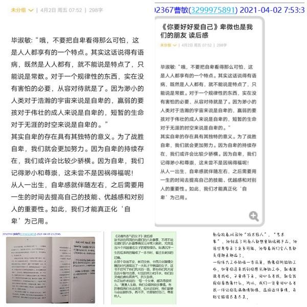 当全体活动成员均完成打卡目标后,读书群内满是工商学子留下的作品,记录着各自在文学中的进步与成长,相信在之后的活动中,工商学子在阅读与创作方面也会更上一层楼。