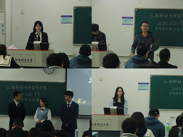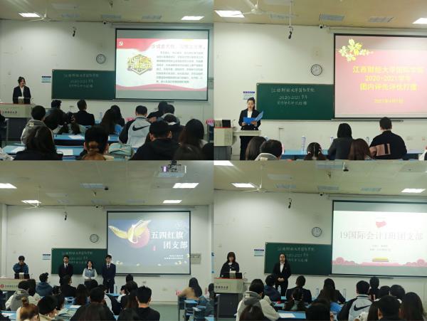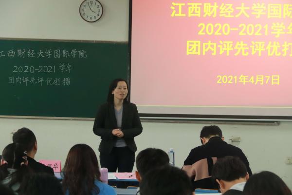 4月7日,国际学院于蛟桥校区一教1102教室成功举行2020-2021学年团内评优评先述职打擂活动。国际学院党委书记涂艳、党委副书记王明华、团委副书记吕镇坤、辅导员冯爽爽、谢博卿、吴雨晨出席本次活动并担任打擂评委。