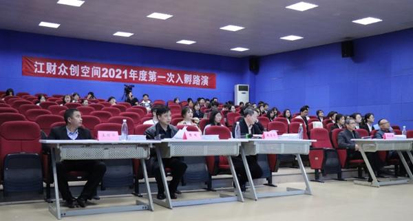 4月9日下午,江财众创空间2021年度第一次入孵路演在麦庐园大学生活动中心成功举办。